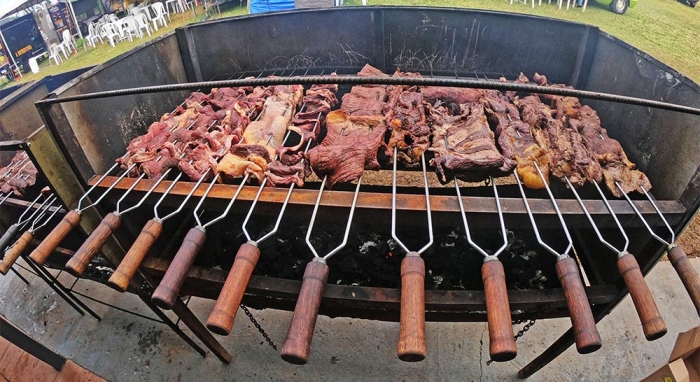 A equipe responsável pelo churrasco trabalha a todo vapor desde as 4h da manhã, com a churrasqueira já acesa. Paralelamente, a equipe da cozinha prepara os acompanhamentos, como arroz, saladas e outros pratos.