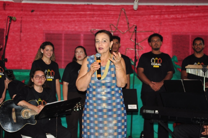 A apresentação encantou o público com um repertório repleto de músicas tradicionais natalinas. Antes de iniciar a cantata, a regente e apresentadora do coral, professora Edna Palmeira Martinez, explicou ao público o significado desse tipo de apresentação.“O que nós fazemos em uma cantata é reunir várias músicas com o mesmo tema. Hoje estamos no momento natalino, no momento de festas e de celebrar o nascimento de Jesus Cristo. Por isso, todas as músicas têm poesias que falam do Natal e de um ano novo cheio de alegria e esperança”, afirmou.