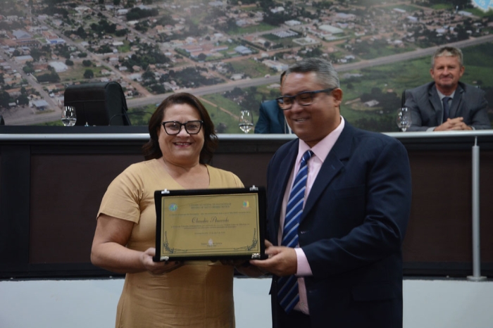 A cidadania alcinopolense também foi concedida a Claudia de Azevedo, indicada pelo presidente da Câmara, Valdeci Passarinho. Mãe de três filhos, formada em Letras em Cassilândia, ela chegou ao município aos 29 anos em busca de um futuro melhor. Encontrou acolhimento e força na comunidade, tornando-se professora e buscando despertar o melhor em seus alunos, acompanhando de perto o crescimento de inúmeras crianças.