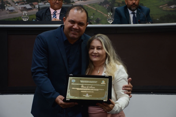 A homenagem do vereador Fernando Nicoletti foi destinada a Mara Elisa Navacchi Caseiro, que construiu vínculo com Alcinópolis traduzido em trabalho, destinação de recursos, apoio a áreas essenciais e defesa constante das demandas do município.