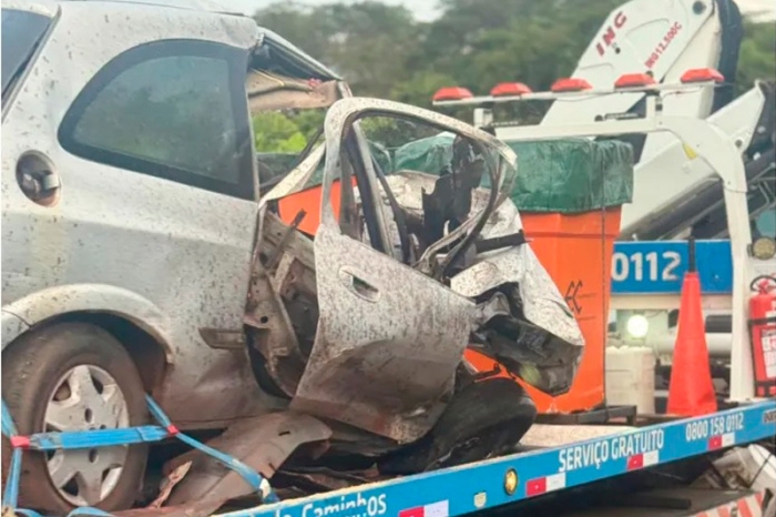 O carro de Amauri foi totalmente destruído. Não há informações sobre o estado de saúde do motorista da carreta.