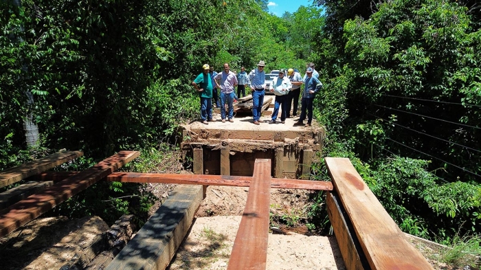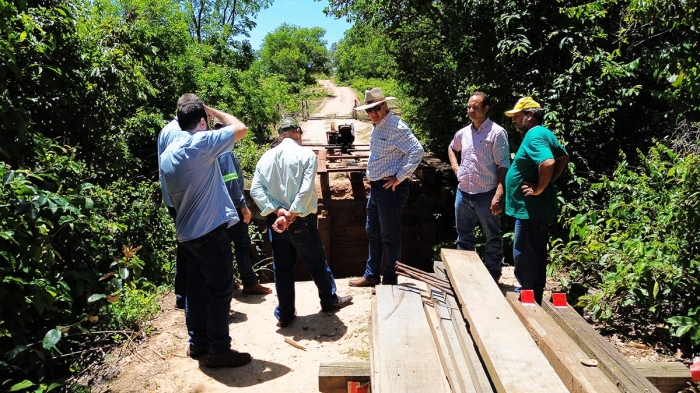O prefeito de Figueirão, Juvenal Consolaro, acompanhado do vice-prefeito Jorge Mortari, do secretário municipal de Infraestrutura e Serviços Públicos (SEINFRA), Fernando Fernandes Santana, e do secretário executivo de Desenvolvimento Econômico Sustentável, Rogério Beretta, visitou a obra de reforma da ponte sobre o Córrego Gavião, na região dos Morrinhos. A intervenção está sendo executada pela Construtora Nova Conquista.