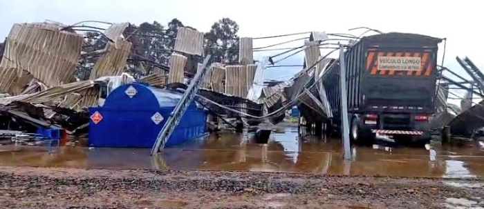 No terminal ferroviário, parte dos telhados de empresas e galpões ficou danificada. Caminhoneiros que estavam no local relataram que a força do vento arrancou lonas e deslocou estruturas leves, causando prejuízos materiais.