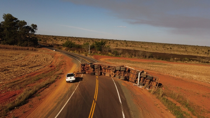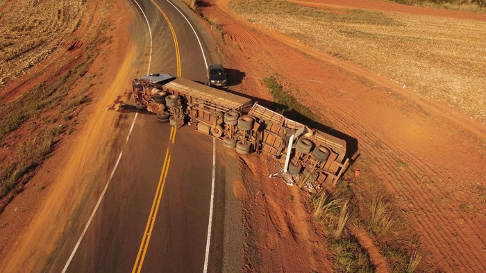 Um acidente na divisa de Mato Grosso do Sul com Estado de Goiás, na região do Baús, (Três Fronteiras) uma carreta tombou na curva de acesso a GO 341.