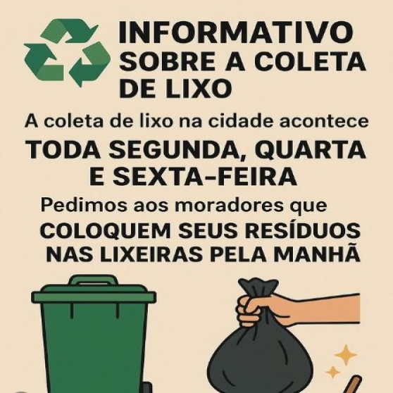 O município pede aos moradores que coloquem seus resíduos nas lixeiras pela manhã, garantindo que todo o material seja recolhido corretamente pelos servidores.
