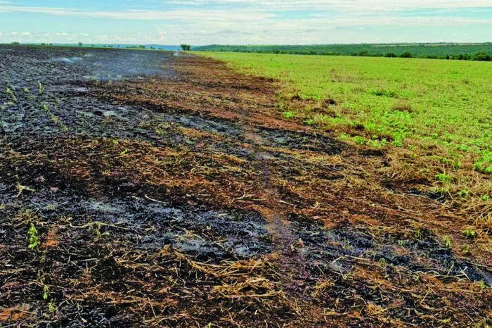 Horas depois, o produtor foi surpreendido com o fogo já dentro de sua propriedade, provocando a queima de aproximadamente 30 hectares de soja. O talhão, que possui 80 hectares no total, teve apenas 50 preservados.