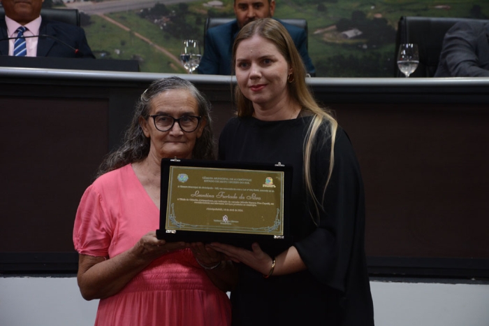 A vereadora Mirelle Piva homenageou Leontina Furtado da Silva, mãe de seis filhos, que dedicou a vida à família. Chegou quando a cidade ainda era pequena, com pouca infraestrutura, e fez parte desse crescimento. Para ela, Alcinópolis é onde estão suas raízes e onde está seu coração.
