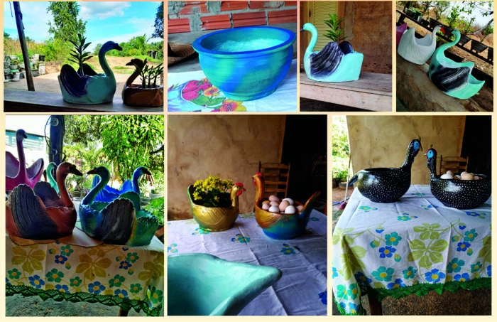 Discreta e de poucas palavras, dona Antonha carrega nas mãos o talento que descobriu há cerca de três anos. Segundo ela, a ideia surgiu no início de um ano recente, quando decidiu criar uma atividade que pudesse ajudar no sustento. Desde então, passou a produzir peças ornamentais feitas de cimento, utilizadas em jardins e também como vasos para plantas.“Fazendo três anos. No início do ano é que eu inventei”, contou a artesã durante entrevista ao Portal Regional MS.