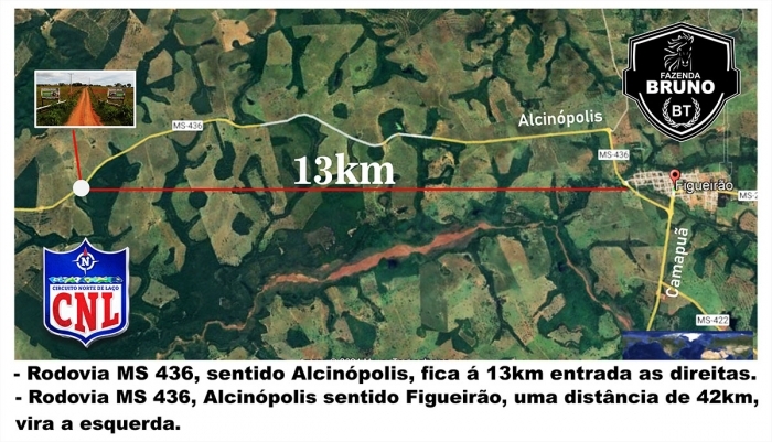 A Fazenda fica localizada nas margens da MS 223, sentido Figueirão X Alcinópolis, há 13 km, lado direito.