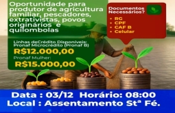 Alcinópolis Microcrédito Caixa Pronaf B estará disponível para produtores do Assentamento Santa Fé em Alcinópolis.