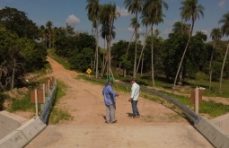 Noticias Secretário da SEMOSP de Alcinópolis visita a ponte de concreto do Rio Jauru.