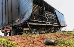 Noticias Caminhão carregado de cerveja pega fogo após pneu estourar em MS.