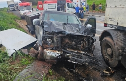 Noticias Acidente com 6 feridos na BR-153, envolve duas caminhonetes e uma carreta.