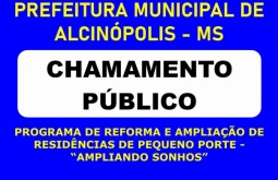 Alcinópolis Prefeitura divulga chamamento público “PROGRAMA DE REFORMA E AMPLIAÇÃO”..