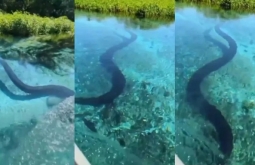 Noticias Sucuri gigante surpreende turistas durante passeio de barco em Bonito MS..