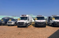 Figueirão Prefeito de Figueirão entrega ambulâncias e caminhonetes para as secretaria.