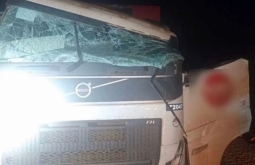 Noticias Tora de madeira se desprende de carreta, atinge cabine de outro veículo.