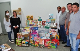 Figueirão Profissionais da Saúde recebem brinquedos para atividades terapêuticas.