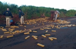 Polícia Em fuga na BR 463 motorista tomba camionete lotada de maconha..