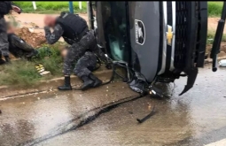 Polícia Viatura do Batalhão de Choque de MS tomba em rodovia de Goiás.Policiais estariam seguindo para o Tocantins e tiveram ferimentos