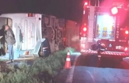 Noticias Ônibus que saiu de MS tomba em rodovia de São Paulo e 35 pessoas são socorridasCerca de 50 pessoas ocupavam o veículo; causas do acidente são apuradas