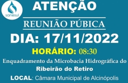 Noticias SANESUL realiza amanhã 17/11 - “Reunião Pública em Alcinópolis”.A sua Participação é muito Importante!