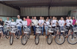 Figueirão FIGUEIRÃO: A Secretaria de Saúde entrega bicicletas elétricas.Presentes ao ato de entrega o prefeito Juvenal Consolaro.