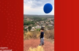 Região Menino de 3 anos se despede de chupeta com balão de gás hélio em Camapuã.