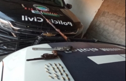 Figueirão Figueirão: Polícias apreendem armas e munições em cumprimento a mandado de busca em fazendaDois revólveres e uma espingarda foram apreendidos.