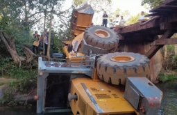 Noticias Operador de máquinas morre esmagado por trator ao cair de ponte.Operador caiu com trator de uma altura de 3 metros...