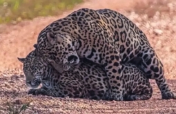 Meio Ambiente Casal de onça-pintada é flagrado 'trocando chamego' em fazenda no Pantanal de MSSem se incomodar com a presença dos turistas, as onças aproveitaram o dia para entrar na água.