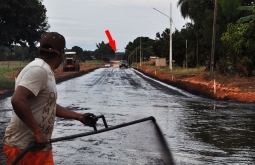Alcinópolis Alcinópolis: Condutor é flagrado desrespeitando os trabalhos de pavimentação.Aplicando o material de imprimação...