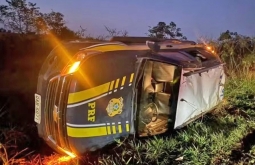 Polícia Viatura da PRF capota durante perseguição ao desviar de acidente em MS.