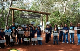 Meio Ambiente Alunos instalam placas informativas sobre fauna e flora no Monumento Natural Serra do Bom Jardim, em Alcinópolis.