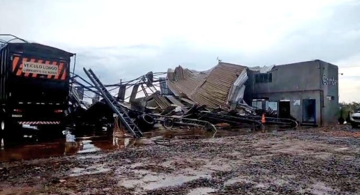 No terminal ferroviário, parte dos telhados de empresas e galpões ficou danificada. Caminhoneiros que estavam no local relataram que a força do vento arrancou lonas e deslocou estruturas leves, causando prejuízos materiais.